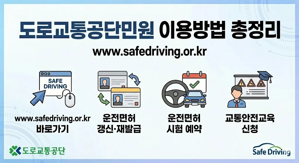도로교통공단 안전운전 통합민원 홈페이지 www.safedriving.or.kr 바로가기 운전면허 갱신 재발급 시험 예약 교통안전교육 신청방법 총정리