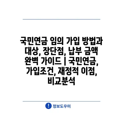 국민연금 임의 가입 방법과 대상, 장단점, 납부 금액 완벽 가이드 | 국민연금, 가입조건, 재정적 이점, 비교분석
