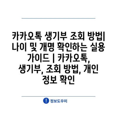 카카오톡 생기부 조회 방법| 나이 및 개명 확인하는 실용 가이드 | 카카오톡, 생기부, 조회 방법, 개인 정보 확인