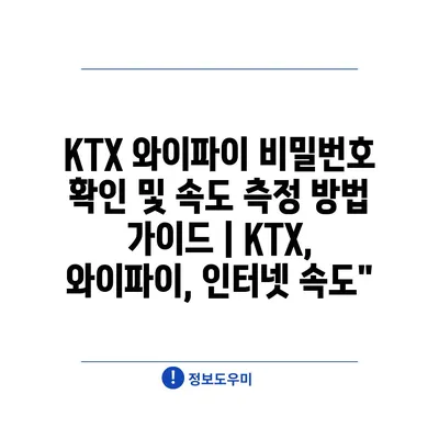 KTX 와이파이 비밀번호 확인 및 속도 측정 방법 가이드 | KTX, 와이파이, 인터넷 속도”