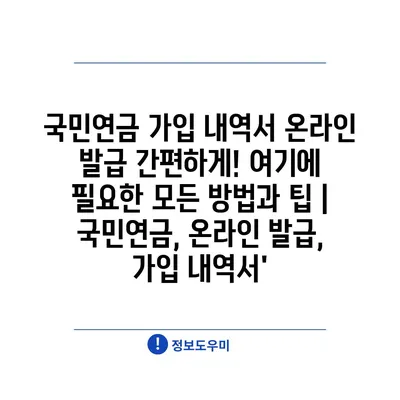 국민연금 가입 내역서 온라인 발급 간편하게! 여기에 필요한 모든 방법과 팁 | 국민연금, 온라인 발급, 가입 내역서’