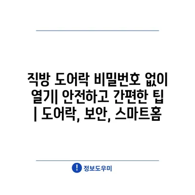 직방 도어락 비밀번호 없이 열기| 안전하고 간편한 팁 | 도어락, 보안, 스마트홈