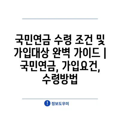 국민연금 수령 조건 및 가입대상 완벽 가이드 | 국민연금, 가입요건, 수령방법