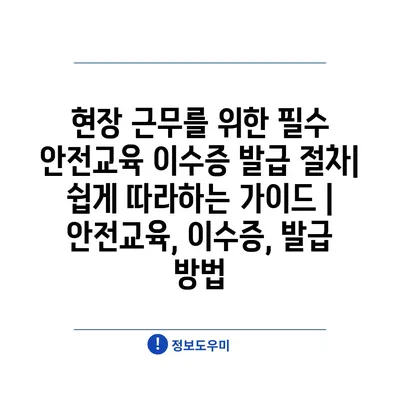 현장 근무를 위한 필수 안전교육 이수증 발급 절차| 쉽게 따라하는 가이드 | 안전교육, 이수증, 발급 방법