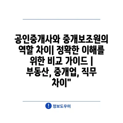 공인중개사와 중개보조원의 역할 차이| 정확한 이해를 위한 비교 가이드 | 부동산, 중개업, 직무 차이”
