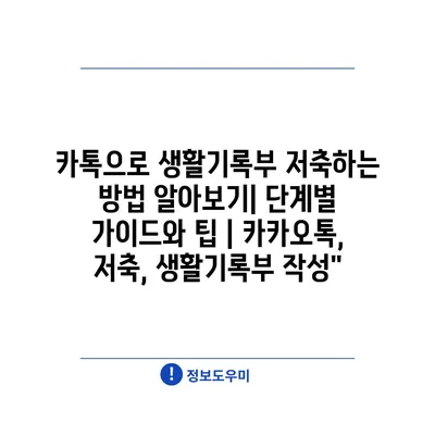 카톡으로 생활기록부 저축하는 방법 알아보기| 단계별 가이드와 팁 | 카카오톡, 저축, 생활기록부 작성”