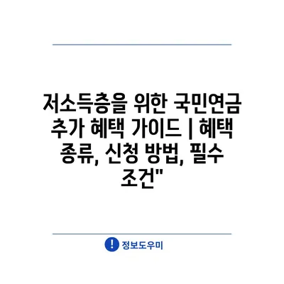 저소득층을 위한 국민연금 추가 혜택 가이드 | 혜택 종류, 신청 방법, 필수 조건”