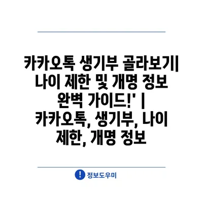 카카오톡 생기부 골라보기| 나이 제한 및 개명 정보 완벽 가이드!’ | 카카오톡, 생기부, 나이 제한, 개명 정보