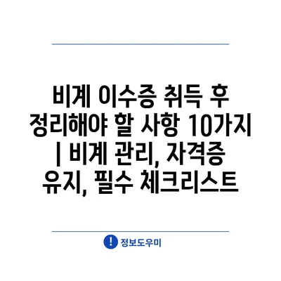 비계 이수증 취득 후 정리해야 할 사항 10가지 | 비계 관리, 자격증 유지, 필수 체크리스트 비계 이수증을 취득한 후에는 효과적인 관리가 필요합니다. 이를 위해 첫 번째로, 이수증의 보관 장소를 정리하고 기록해 두세요. 두 번째로, 정기적으로 자격증 갱신 시기를 확인해야 합니다. 세 번째로, 비계 관련 법규 및 규정을 숙지하고, 변경 사항을 체크하세요. 네 번째로, 안전 교육 … Read more