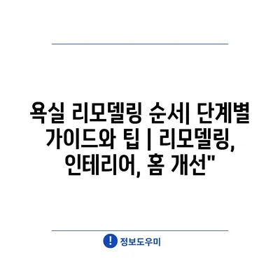 욕실 리모델링 순서| 단계별 가이드와 팁 | 리모델링, 인테리어, 홈 개선”