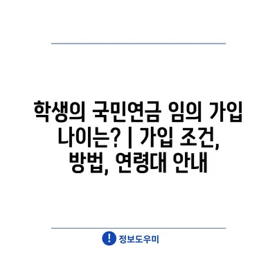 학생의 국민연금 임의 가입 나이는? | 가입 조건, 방법, 연령대 안내