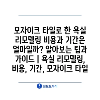 모자이크 타일로 한 욕실 리모델링 비용과 기간은 얼마일까? 알아보는 팁과 가이드 | 욕실 리모델링, 비용, 기간, 모자이크 타일