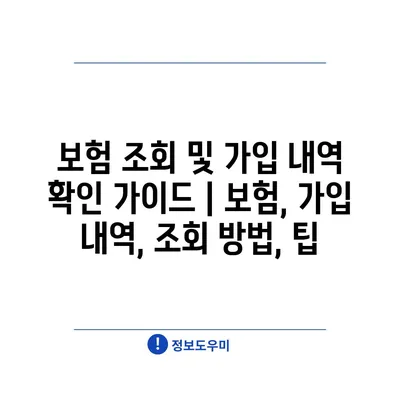 보험 조회 및 가입 내역 확인 가이드 | 보험, 가입 내역, 조회 방법, 팁