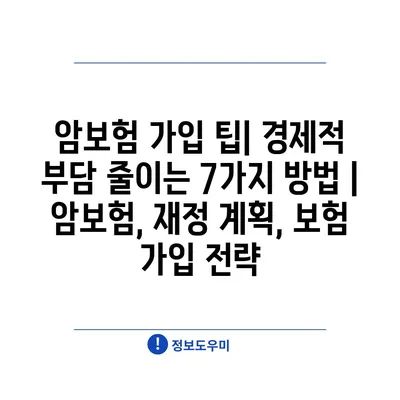 암보험 가입 팁| 경제적 부담 줄이는 7가지 방법 | 암보험, 재정 계획, 보험 가입 전략
