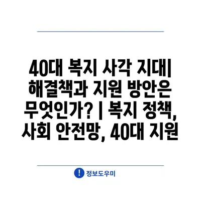 40대 복지 사각 지대| 해결책과 지원 방안은 무엇인가? | 복지 정책, 사회 안전망, 40대 지원