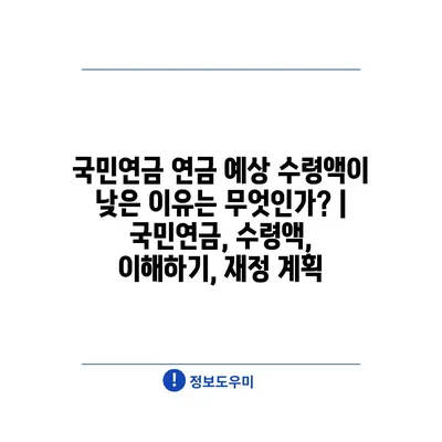 국민연금 연금 예상 수령액이 낮은 이유는 무엇인가? | 국민연금, 수령액, 이해하기, 재정 계획