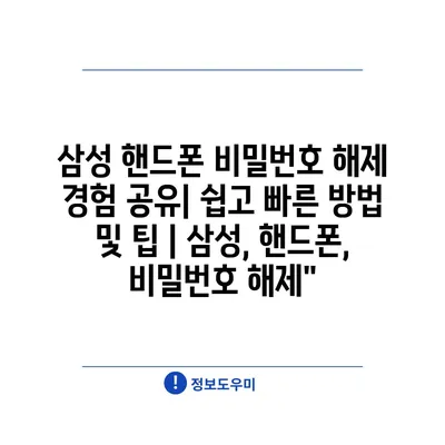 삼성 핸드폰 비밀번호 해제 경험 공유| 쉽고 빠른 방법 및 팁 | 삼성, 핸드폰, 비밀번호 해제”