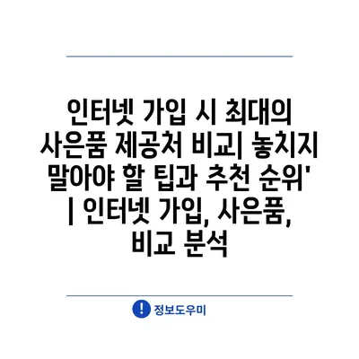 인터넷 가입 시 최대의 사은품 제공처 비교| 놓치지 말아야 할 팁과 추천 순위’ | 인터넷 가입, 사은품, 비교 분석