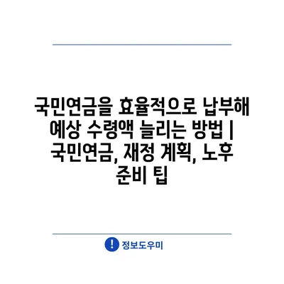 국민연금을 효율적으로 납부해 예상 수령액 늘리는 방법 | 국민연금, 재정 계획, 노후 준비 팁