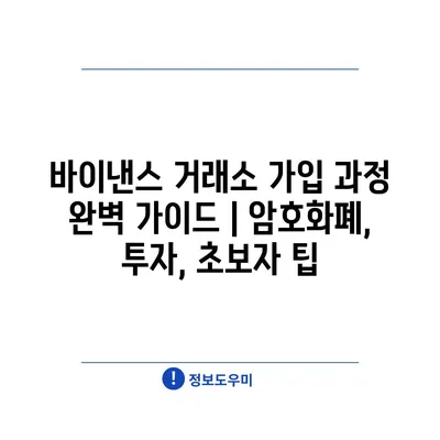 바이낸스 거래소 가입 과정 완벽 가이드 | 암호화폐, 투자, 초보자 팁