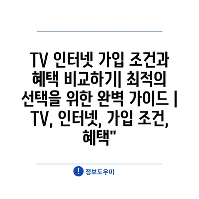 TV 인터넷 가입 조건과 혜택 비교하기| 최적의 선택을 위한 완벽 가이드 | TV, 인터넷, 가입 조건, 혜택”